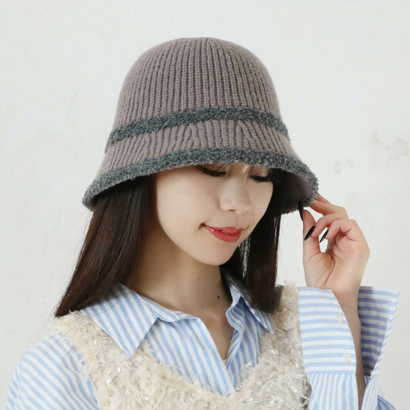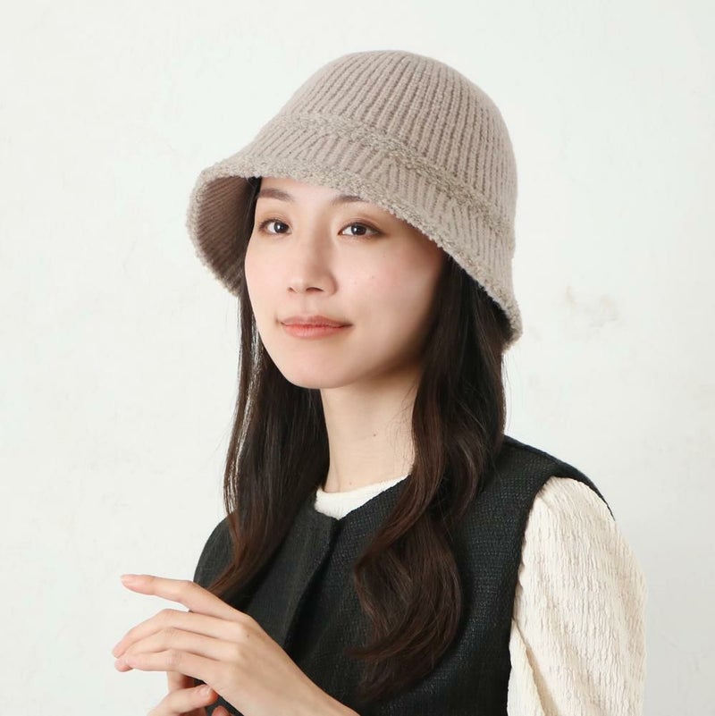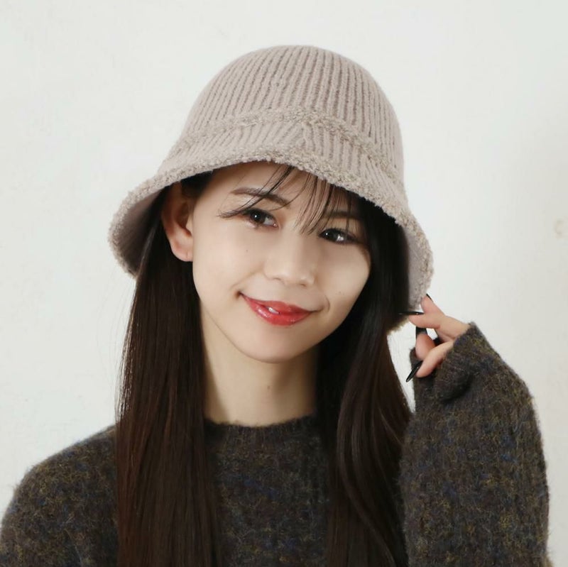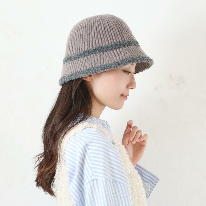 ボア素材の切り替えがポイントのバケットハットです。ニット素材のハットはかぶるだけで季節感を演出できるアイテム◎寒い冬の防寒アイテムとしても活躍します!!