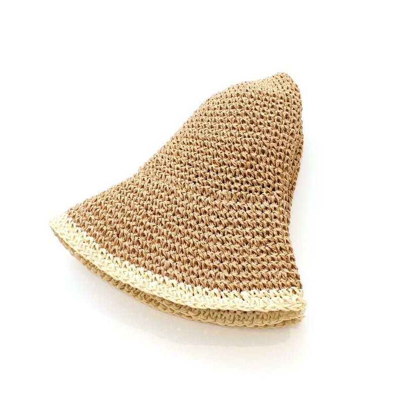 毎年人気の定番ペーパーハットです。ざっくりと編み上げた素材感が涼しげで夏にぴったり。柔らかいので小さくたたんでバッグインも可能です。ツバの先はワイヤー入りで、お好きな形にアレンジしてお使いいただけます!汗止めテープには冷感素材を使用しております。