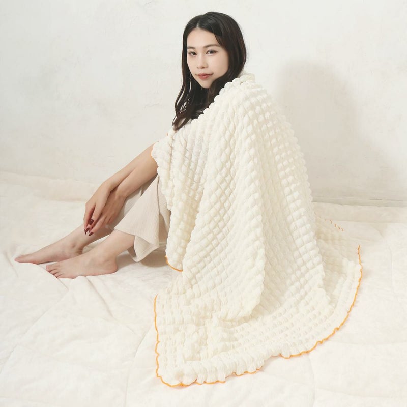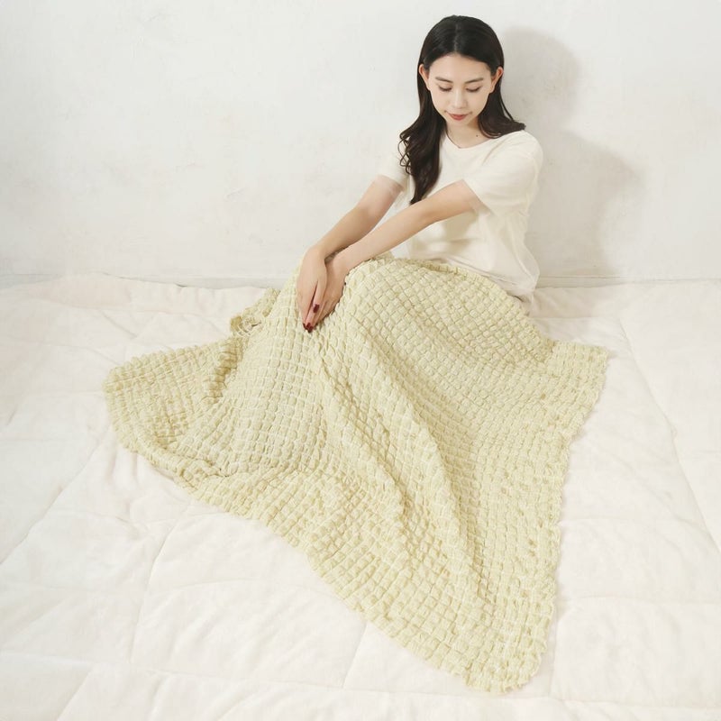 昨年も好評のポップコーン生地のシリーズです。大判サイズのマルチカバーケットです。インテリアに馴染みやすいシンプルなデザインなので、ベッドやソファーにかけてお部屋のポイントになります。 #0224
