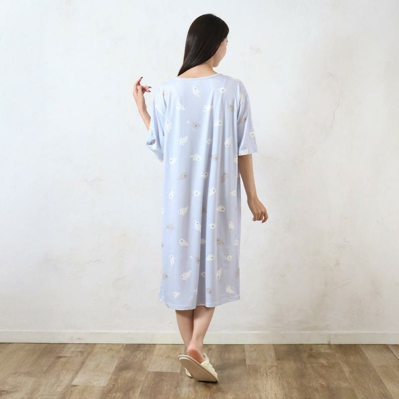 さらりとやわらかな冷感ルームワンピースです。ゆっくり過ごすおうち時間や、寝苦しい夜も快適に過ごせるルームワンピースです。生地には抗菌防臭加工を施しています。