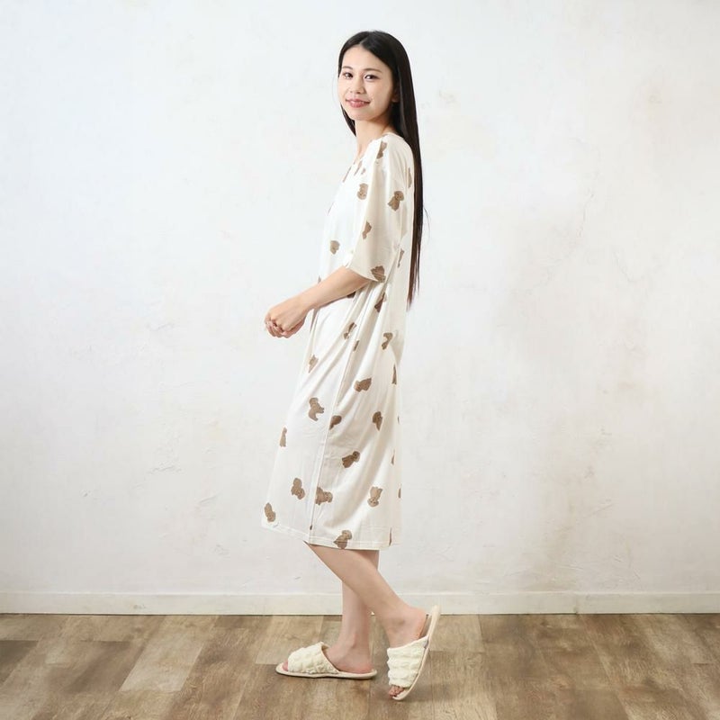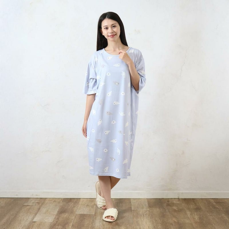 さらりとやわらかな冷感ルームワンピースです。ゆっくり過ごすおうち時間や、寝苦しい夜も快適に過ごせるルームワンピースです。生地には抗菌防臭加工を施しています。