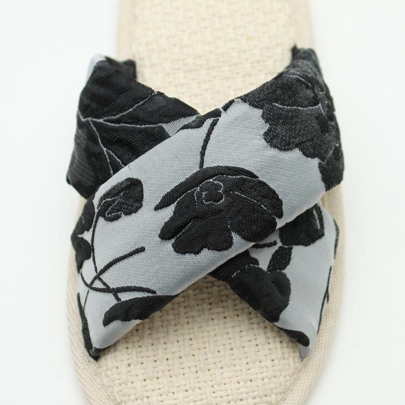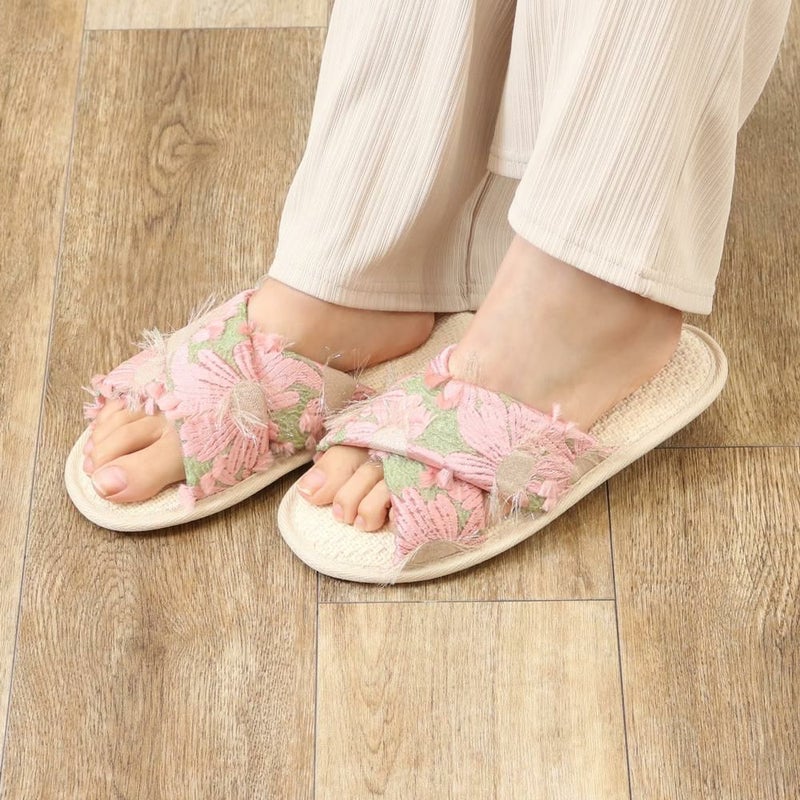 テクスチュール「テクスチャー(Texture)」と「クチュール(Couture)」を組み合わせた造語です。生地の質感を強調しつつ、高級感があるシリーズ。立体感のあるデザインが、シンプルながらも華やかで上品な印象を与えます。華やかなジャガード生地を組み合わせたルームシューズです。お部屋にいる時間がもっと楽しくなるような、こだわりのデザインが魅力です。ソールは涼しげな雑材を使用しており、さらっとした肌触りで快適な履き心地です。※シューズはデザイン・素材により試着感がサイズ表記と異なる場合がございます。予めご了承くださ