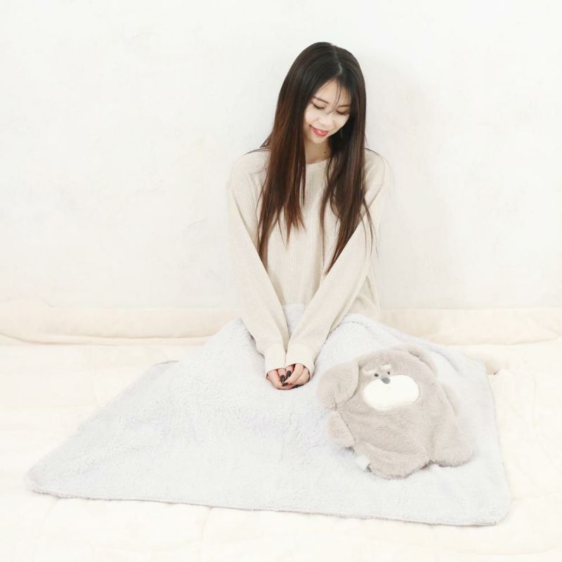 アニマル型カバーにブランケットを収納できる、可愛いクッションインブランケット♪使わない時はクッションとして、寒い時はひざ掛けに。カバーは湯たんぽカバーとしても使える万能アイテム!