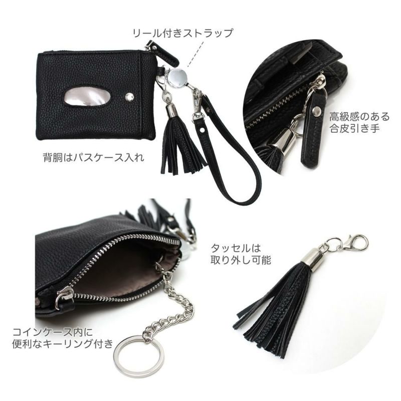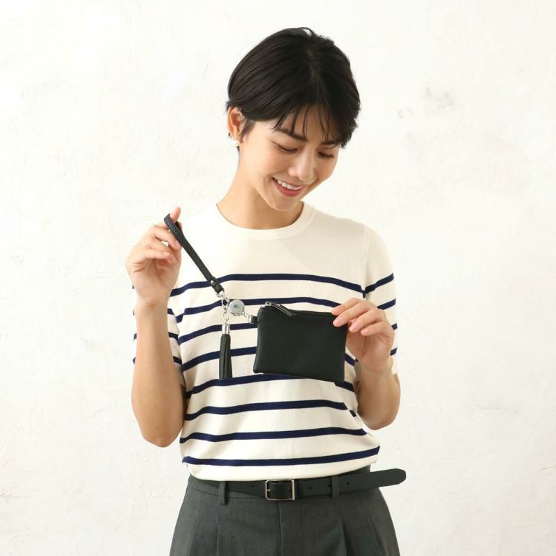 高見えするシュリンク合皮を使用した小物シリーズです。流行りすたりのないシンプルなデザインなので使い勝手がよく、リール付きストラップをつければ、バッグの中でも迷子になりにくく安心です。