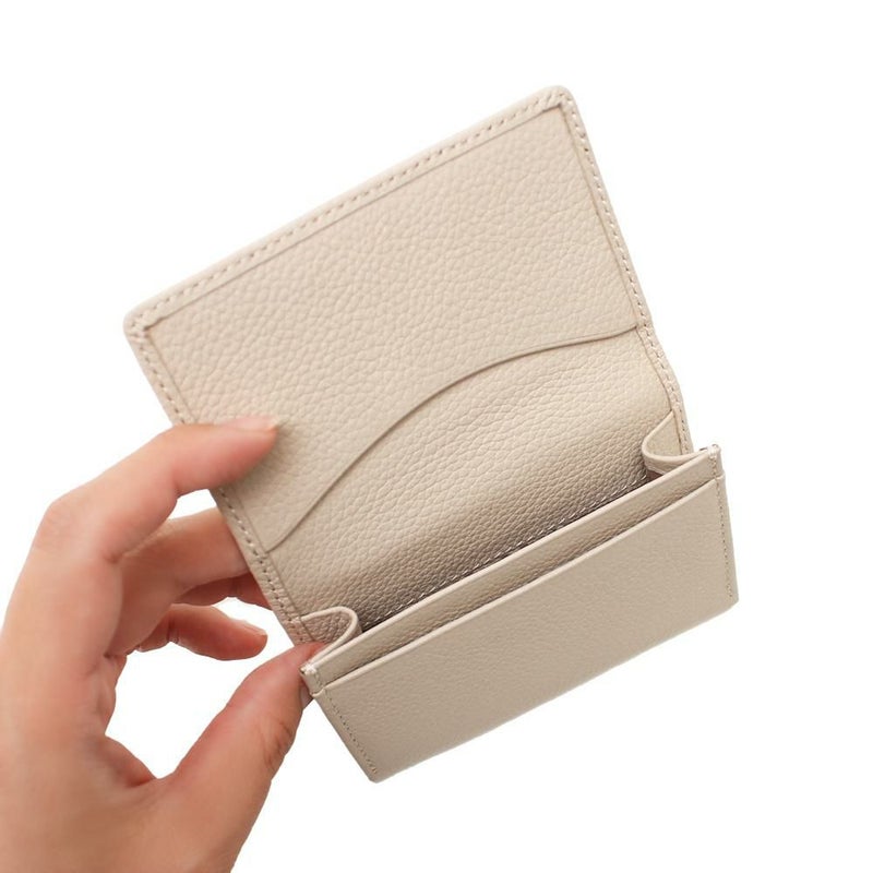 手のひらくらいのコンパクトなサイズ感は小さめのバッグに入れても場所を取りません。スムース革に比べ傷や汚れが目立ちにくく、永くお使いいだけます。シンプルなデザインなの贈り物としても喜ばれます。新生活シーズンでの買い替えにも◎
