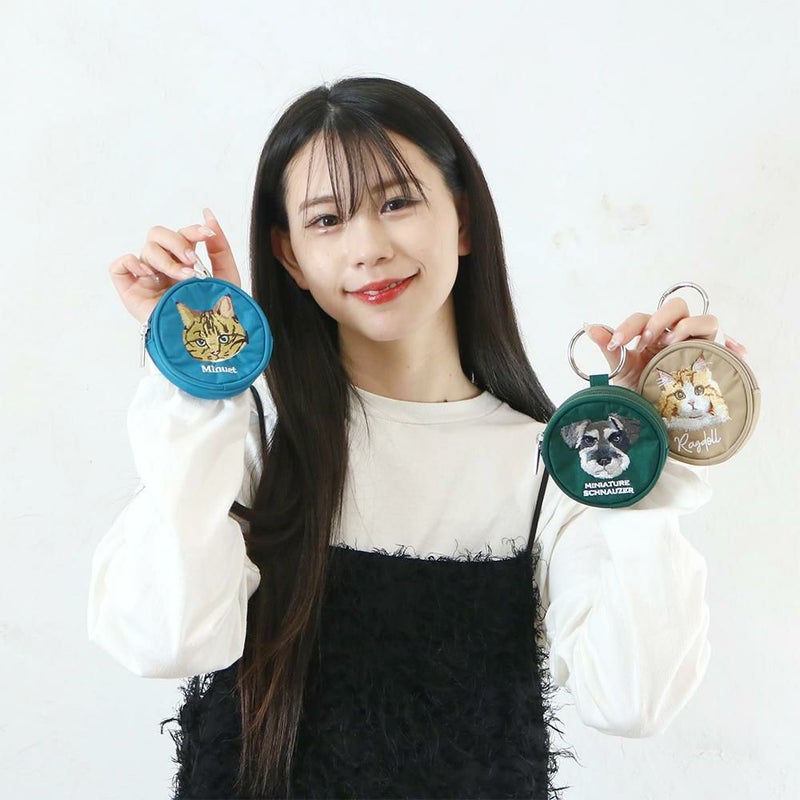 愛嬌のある表情が可愛い犬と猫の刺繍がポイントの丸ポーチです。コインケースやチャームとしてお揃いの柄でバッグにつけるのも◎