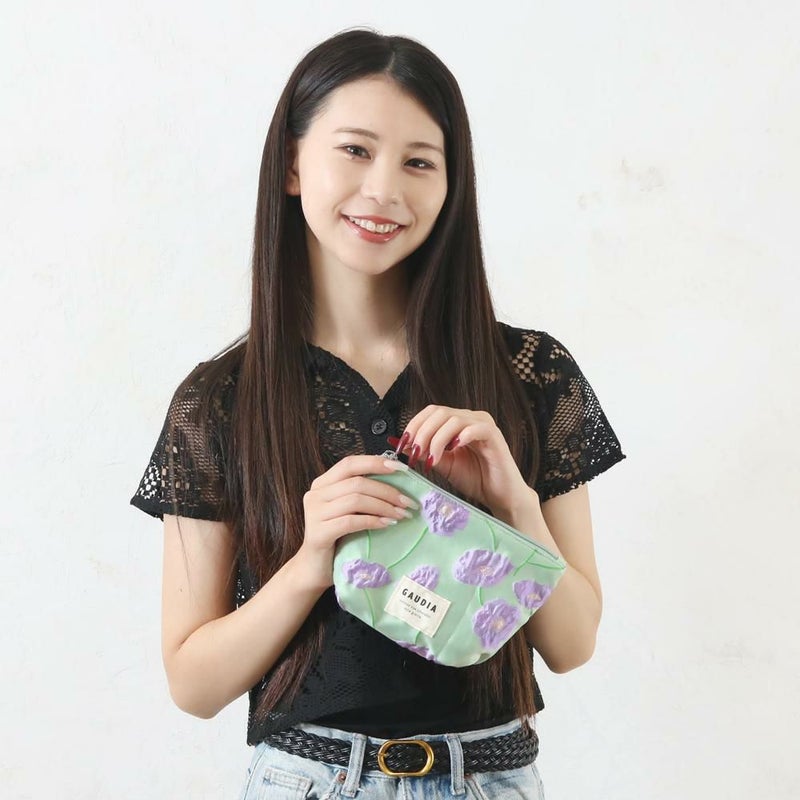 テクスチュール「テクスチャー(Texture)」と「クチュール(Couture)」を組み合わせた造語です。生地の質感を強調しつつ、高級感があるシリーズ。立体感のあるデザインが、シンプルながらも華やかで上品な印象を与えます。マチがしっかりあるので、コスメや小物をたっぷり収納でき、バッグの中をすっきりと整理できます。見た目の可愛らしさだけでなく、実用性も兼ね備えたアイテムです。