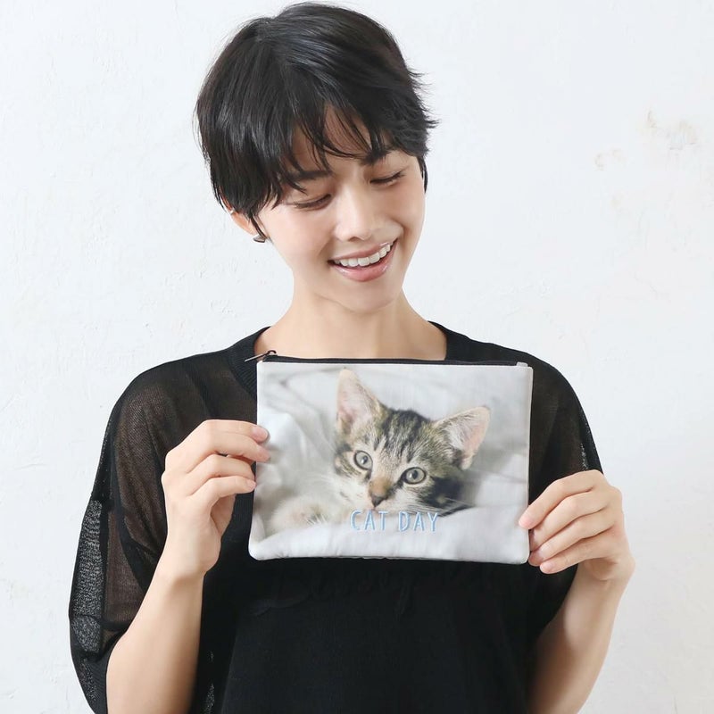 かわいい猫のフォトとCATDAYのロゴ刺繍デザイン、毎日のお出かけが楽しくなります。コスメや小物の収納に最適なサイズ。ちょっとしたプレゼントにもぴったりです。 #260113