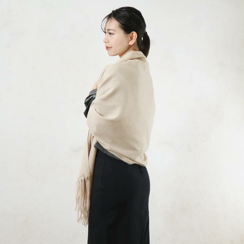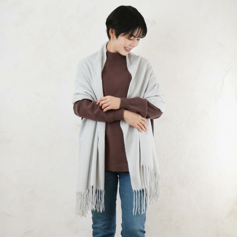 とろけるような、なめらか素材の毎年人気のクリーミータッチストールシリーズ。毛足のない素材感なのでなので秋~春まで長く活躍できるアイテムです。薄手の大判サイズなので巻き方アレンジもさまざま楽しむことができるアイテム◎