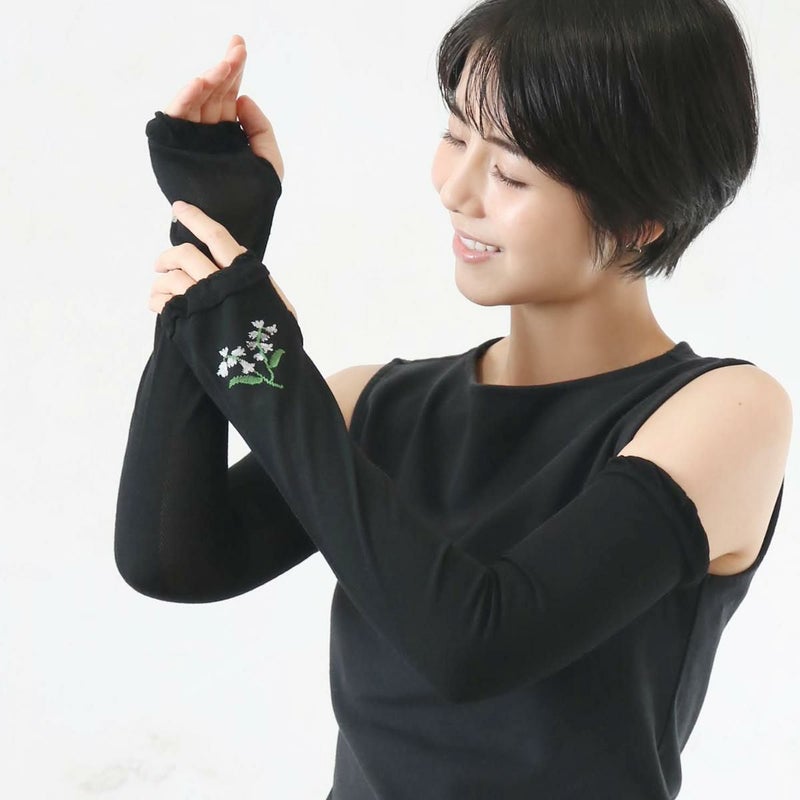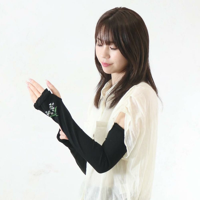 紫外線に当たると白い部分が色を変える、遊び心のあるアームカバーです。UVカット機能とひんやり冷感素材で、夏の紫外線対策にぴったり◎締め付け感の少ない袖口で、快適な着け心地です。洗濯可能なので、汗をかく季節も清潔に使えます。