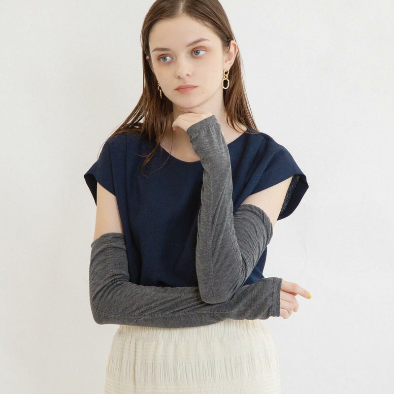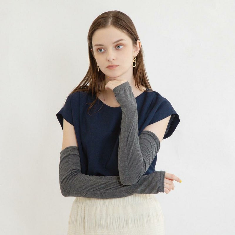 くしゅっとしたシャーリング加工が可愛いアームカバーです。UVカット機能とひんやり冷感素材で、夏の紫外線対策にぴったり◎通気性に優れ、締め付け感が少ないので、快適に着用できます。洗濯可能なので、汗をかく季節も清潔に使えて安心です。