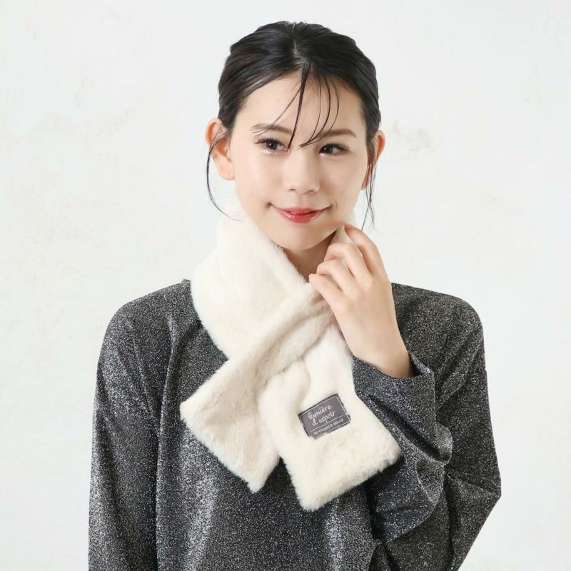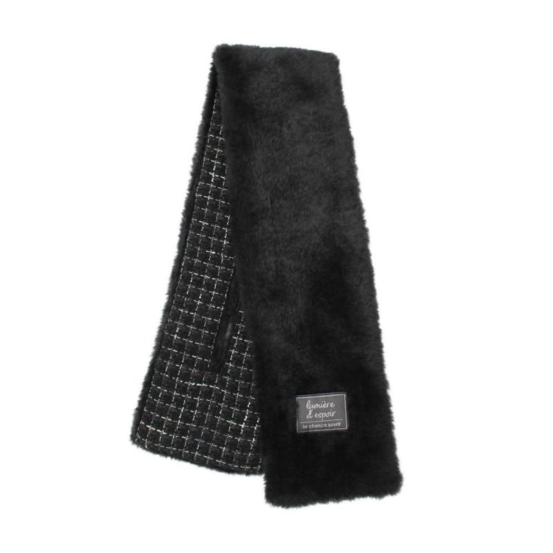 ツイード風生地を使用した差し込みティペット。コンパクトに折りたためるので、持ち運びにも便利なアイテム。リバーシブルでお使いいただけます◎