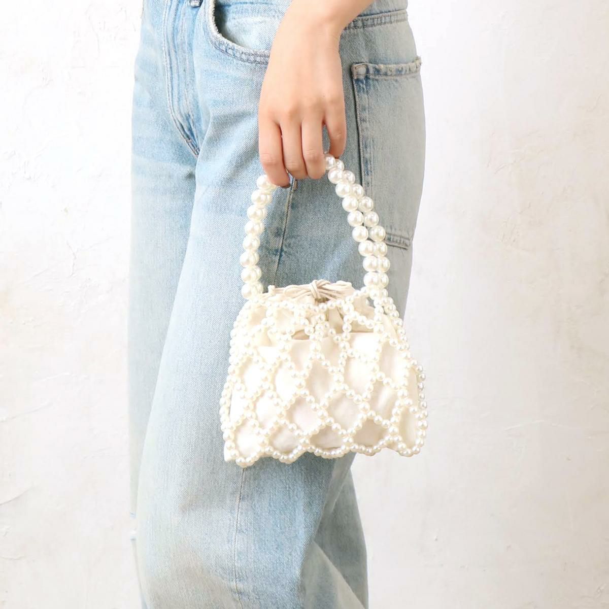 雑材2wayパール付きバケツショルダー aristella