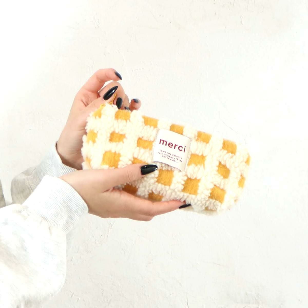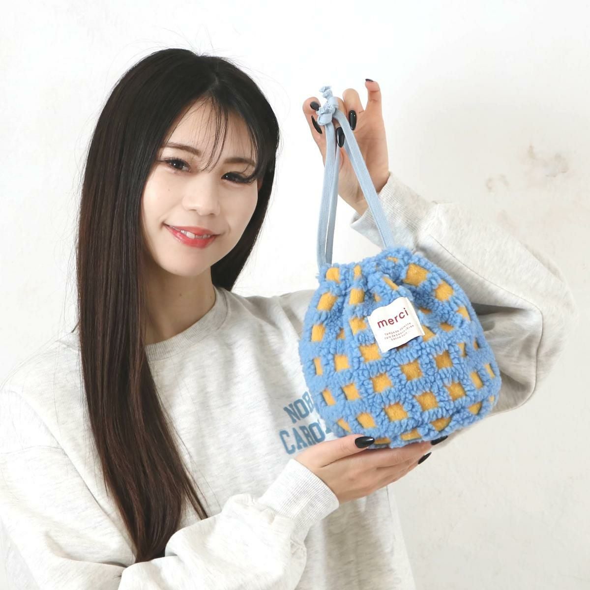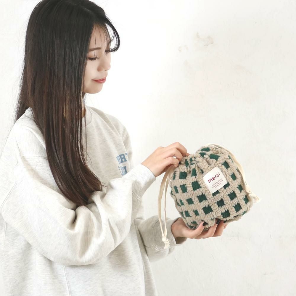 ボアチェック巾着ポーチ